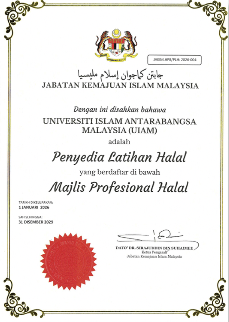 Halal Industry Awareness Program is designed to introduce the meaning of halal and segments related to halal product and services available not only in Malaysia but also global. The one day program will introduce participants to the terminology related to halal products and services and the importance of halal product and services for the growing Muslim community. The participants will also be exposure to the Halal Certification process in Malaysia and general requirements related to the halal product and services